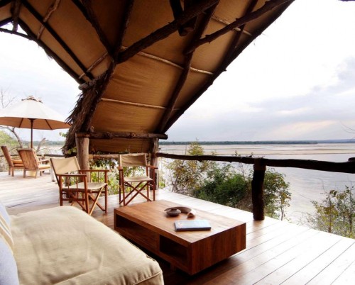 Perched high on a peninsula in the Selous Game Reserve, overlooking the great Rufiji River.